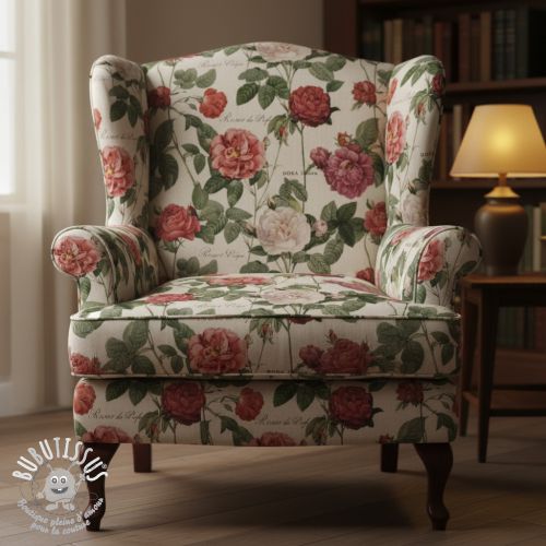 Tissu déco Linenlook premium Vintage Rose Garden digital print