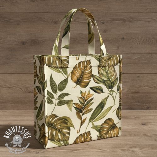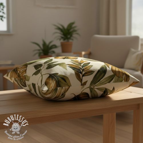Tissu déco premium Linenlook Botanic Bold Leaf digital print