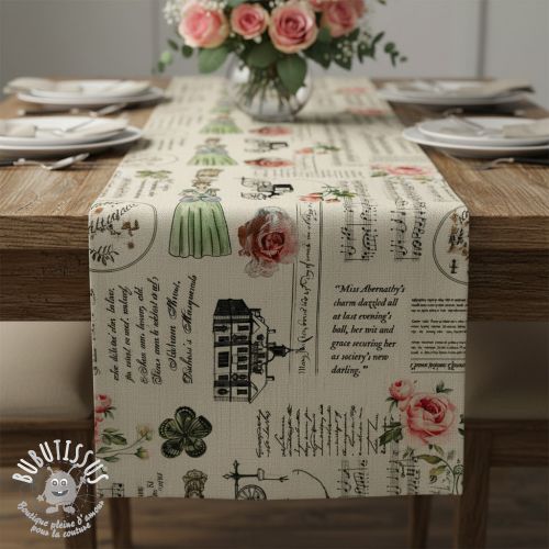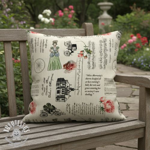Tissu déco premium Linenlook Regal Newspaper digital print