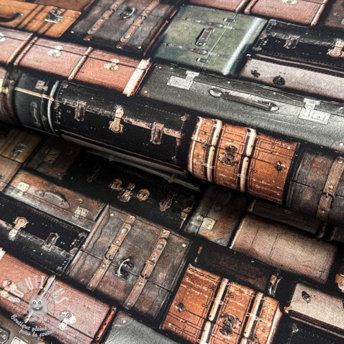 Tissu déco Suitcases grey digital print