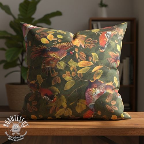 Tissu déco VELVET Pheasant Forest Leaf