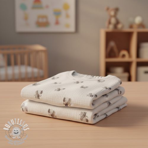 Tissu double gaze/mousseline Animals design A digital print ORGANIC