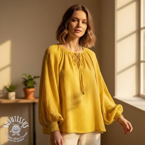 Tissu double gaze/mousseline ochre ORGANIC