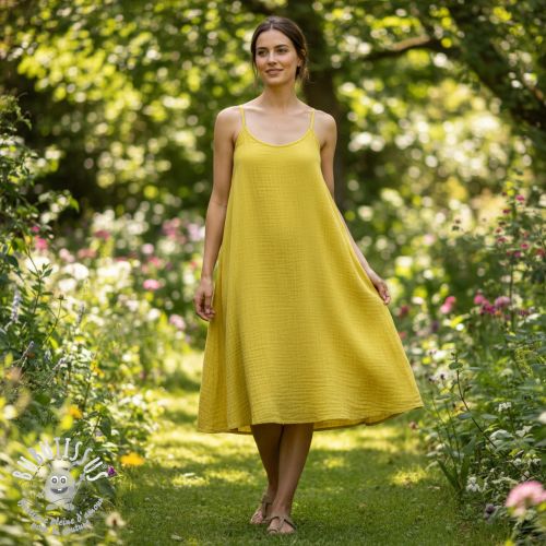 Tissu double gaze/mousseline NEON YELLOW ORGANIC
