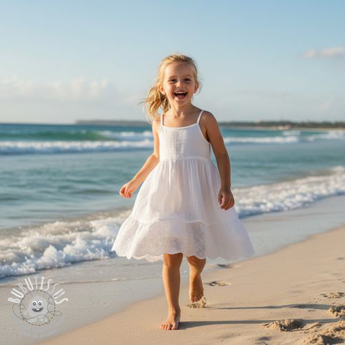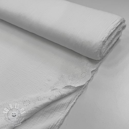 Tissu double gaze/mousseline BORDER Helene white