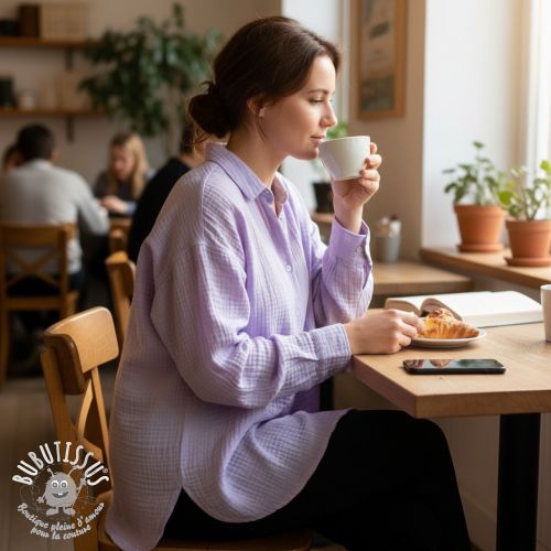 Tissu double gaze/mousseline lilac