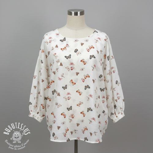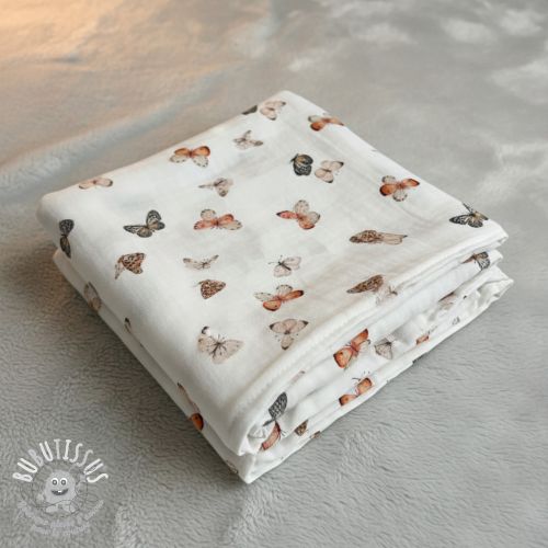Tissu double gaze/mousseline Butterflies white digital print