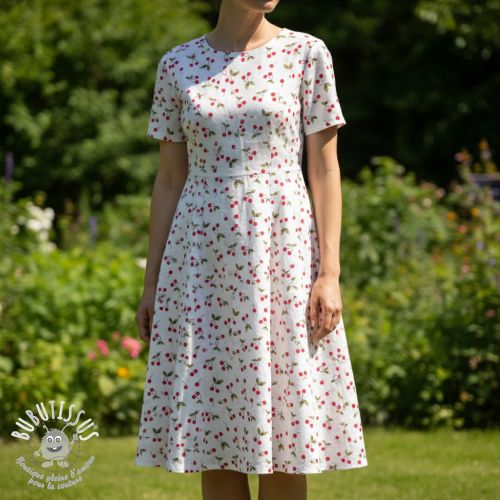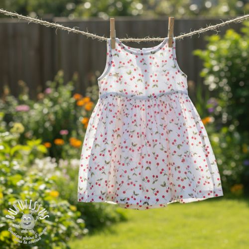 Tissu double gaze/mousseline Cherries white digital print