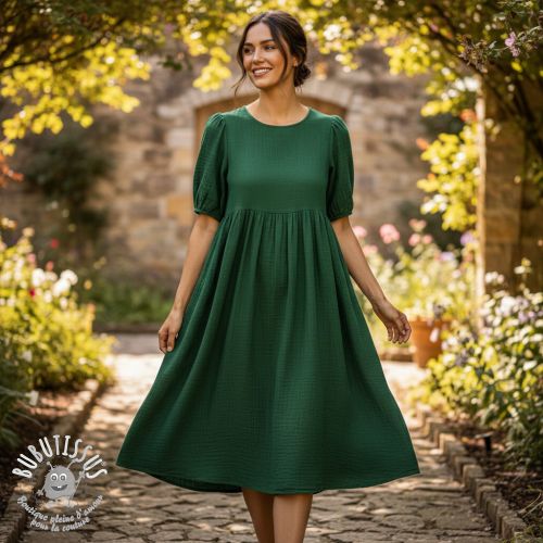 Tissu double gaze/mousseline dark cyan ORGANIC