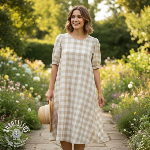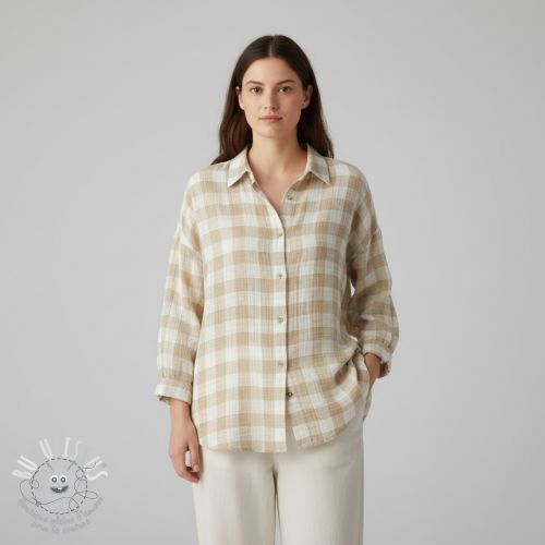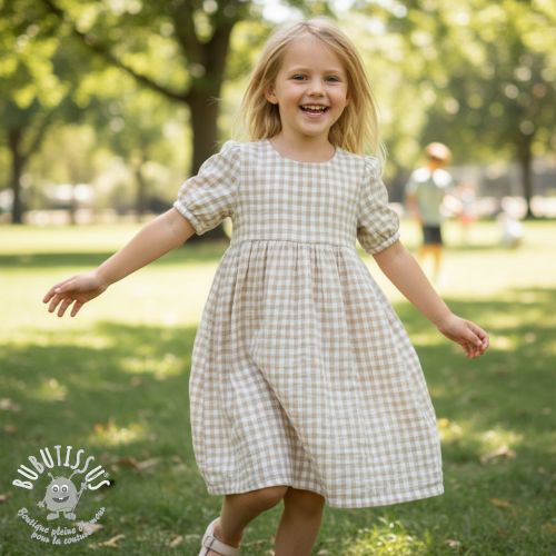 Tissu double gaze/mousseline Double sided CHECKS MINI ochre