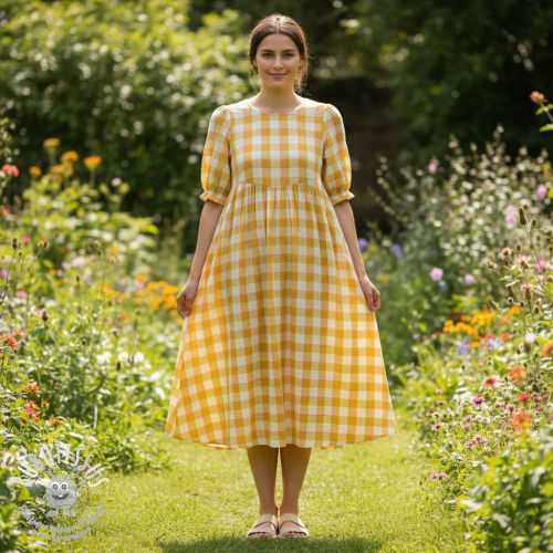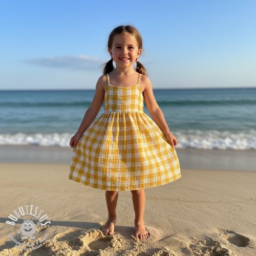 Tissu double gaze/mousseline Double sided CHECKS MINI beige