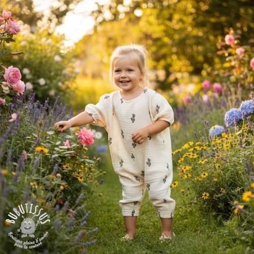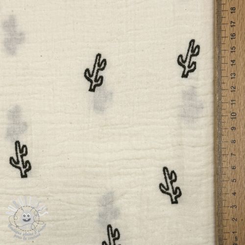 Tissu double gaze/mousseline EMBROIDERY Cactus SIMPLY NATURAL