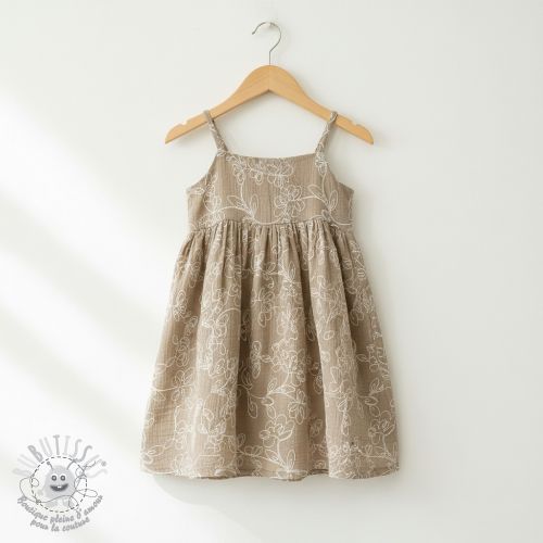 Tissu double gaze/mousseline EMBROIDERY Climbing flowers beige