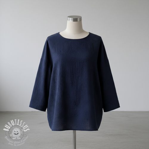 Tissu double gaze/mousseline EMBROIDERY Flowers navy