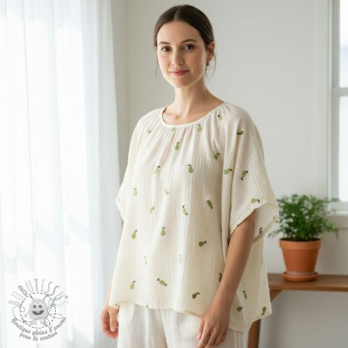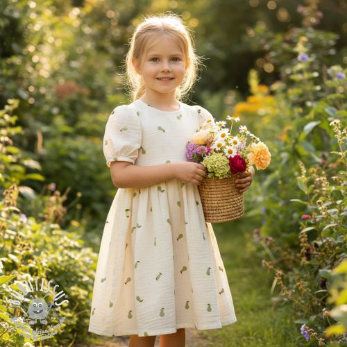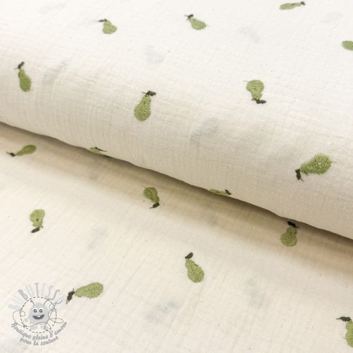 Tissu double gaze/mousseline EMBROIDERY Fruit green SIMPLY NATURAL