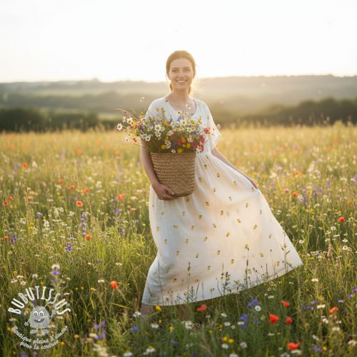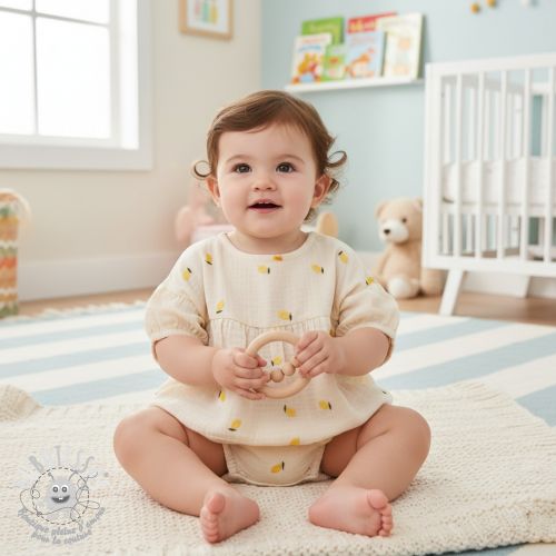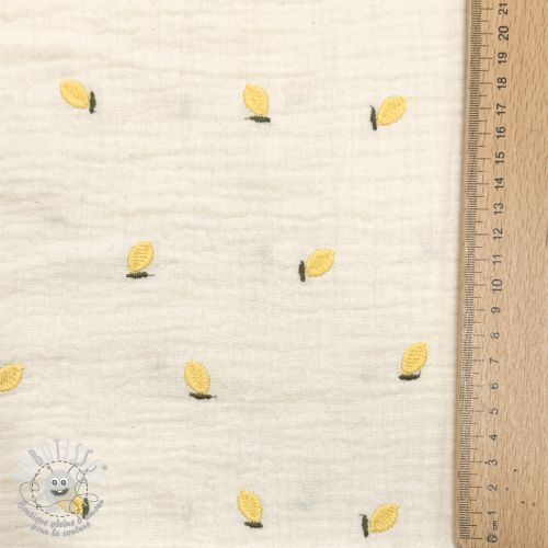 Tissu double gaze/mousseline EMBROIDERY Fruit natural yellow