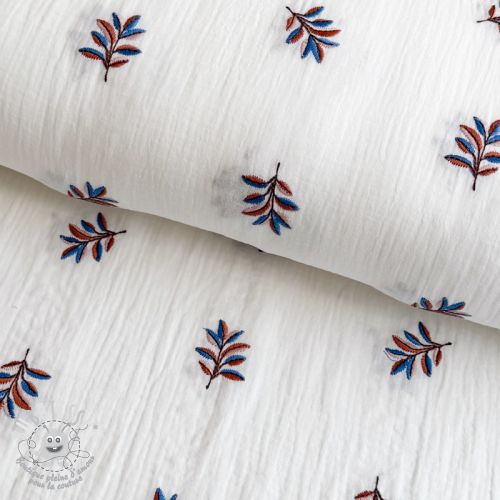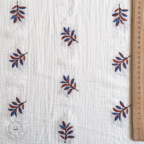 Tissu double gaze/mousseline EMBROIDERY Leaves white