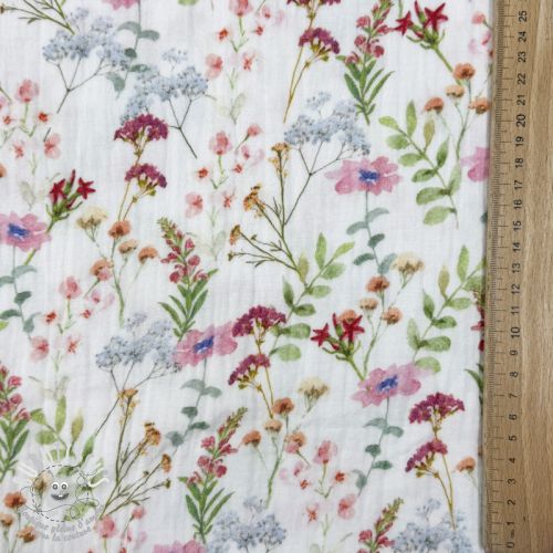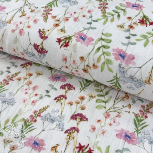 Tissu double gaze/mousseline Flower Sabrina white digital print