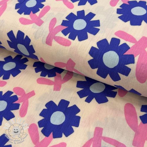Tissu double gaze/mousseline Flowers natural/pink by JENNIFER BOURON ORGANIC