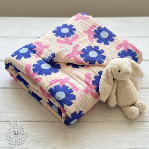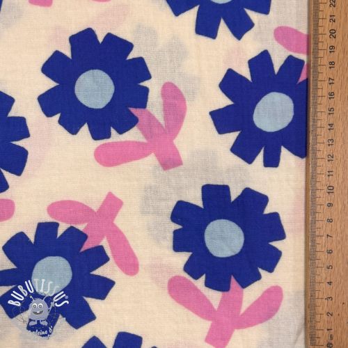 Tissu double gaze/mousseline Flowers blue by JENNIFER BOURON ORGANIC