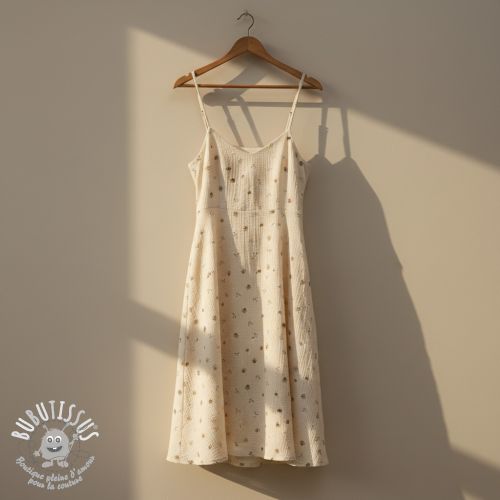 Tissu double gaze/mousseline Flowers SIMPLY NATURAL digital print ORGANIC