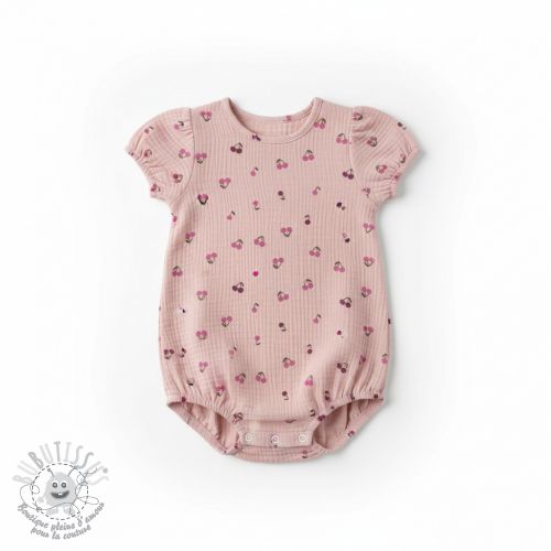 Tissu double gaze/mousseline Fruits cherry soft rose