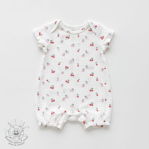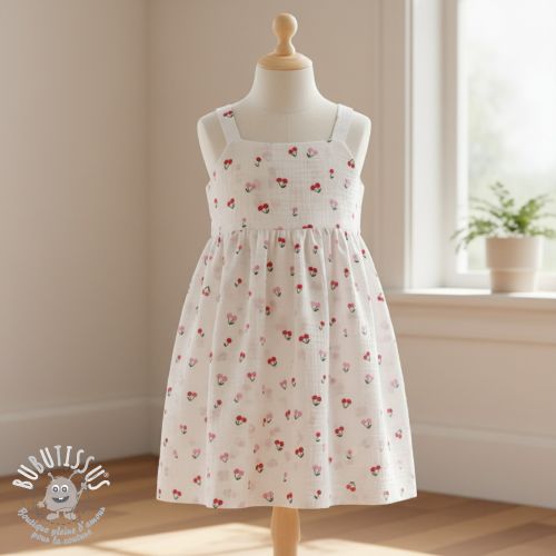 Tissu double gaze/mousseline Fruits cherry soft rose