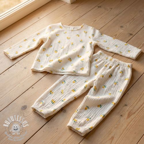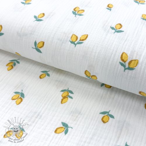 Tissu double gaze/mousseline Fruits lemon ORGANIC