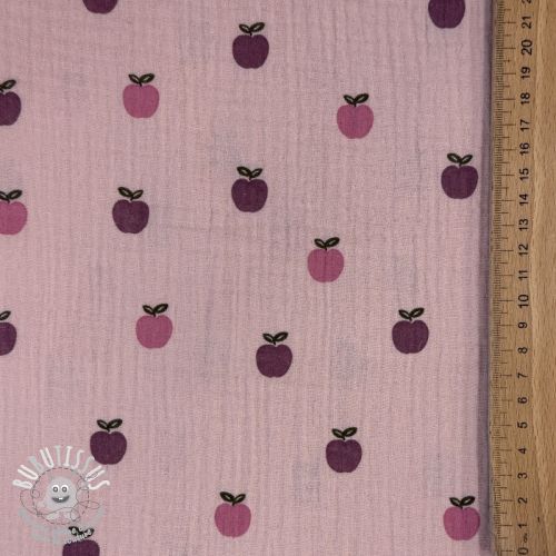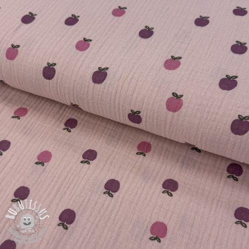 Tissu double gaze/mousseline Fruits cherry soft rose