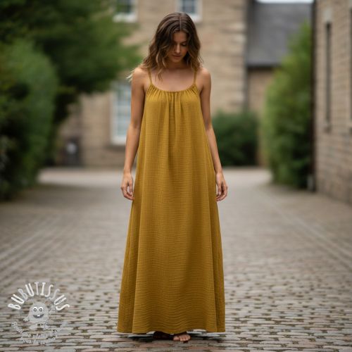 Tissu double gaze/mousseline dark ochre ORGANIC