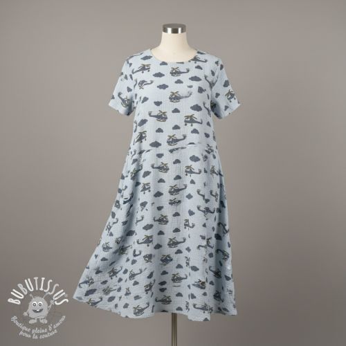 Tissu double gaze/mousseline Helicopters light blue