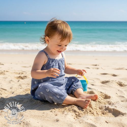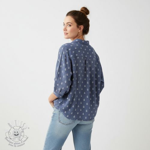 Tissu double gaze/mousseline JACQUARD Anchor 2-side faded gray navy