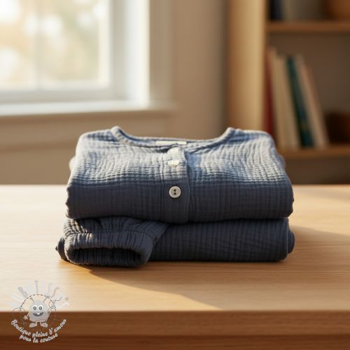 Tissu double gaze/mousseline blue shadow ORGANIC