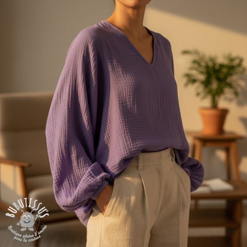 Tissu double gaze/mousseline lavender ORGANIC