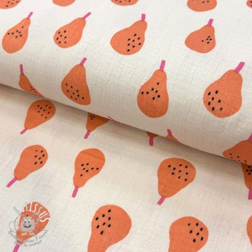 Tissu double gaze/mousseline Pears peach by JENNIFER BOURON ORGANIC