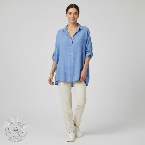 Tissu double gaze/mousseline blue shadow ORGANIC