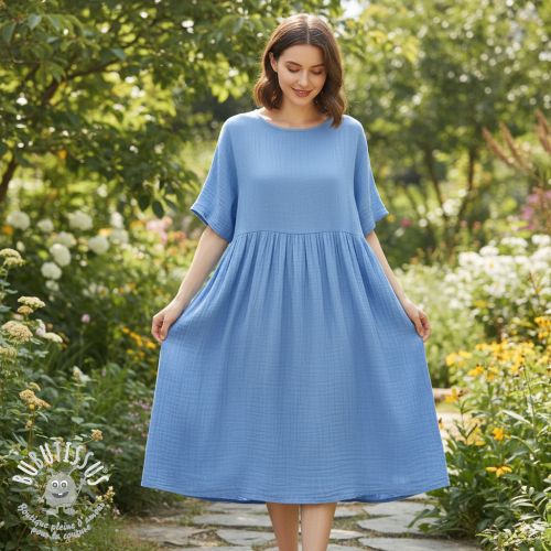 Tissu double gaze/mousseline blue ORGANIC