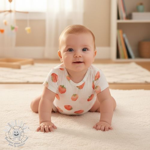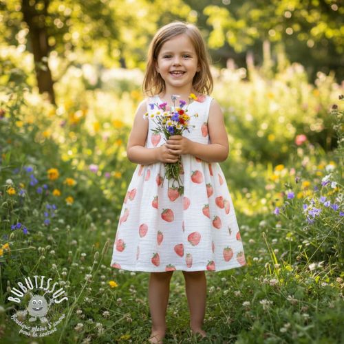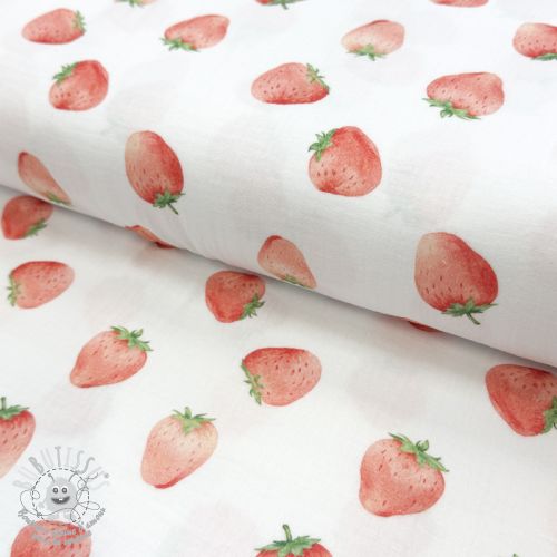 Tissu double gaze/mousseline Strawberries digital print