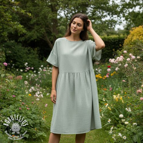 Tissu double gaze/mousseline YARN DYED Stripes old green