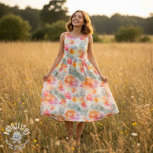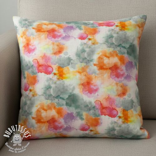 Tissu mélange lin et cotton Abstract flowers RAMIE orange digital print