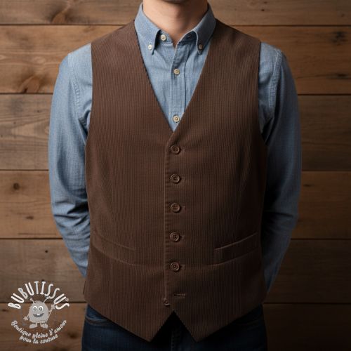 Tissu velours cotelé 6W WASHED STRETCH dark brown