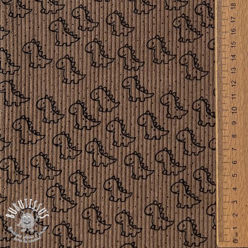 Tissu velours cotelé STRETCH Little dino taupe