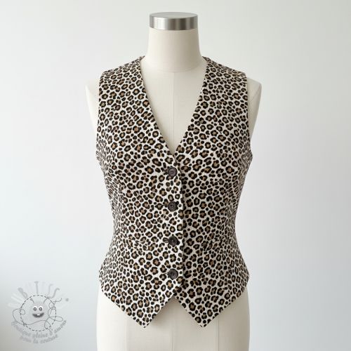 Tissu velours cotelé STRETCH Little Leopard taupe