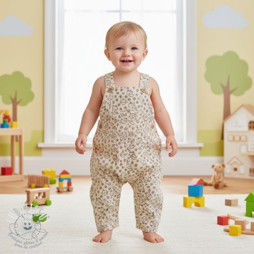 Tissu velours cotelé STRETCH Little dino sand