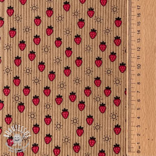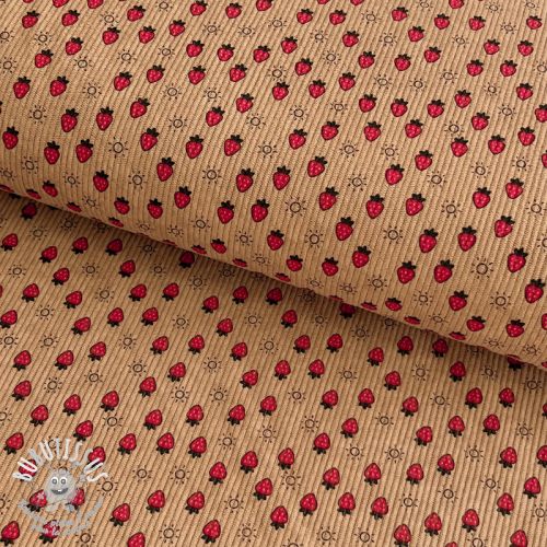 Tissu velours cotelé STRETCH Little strawberries light sand