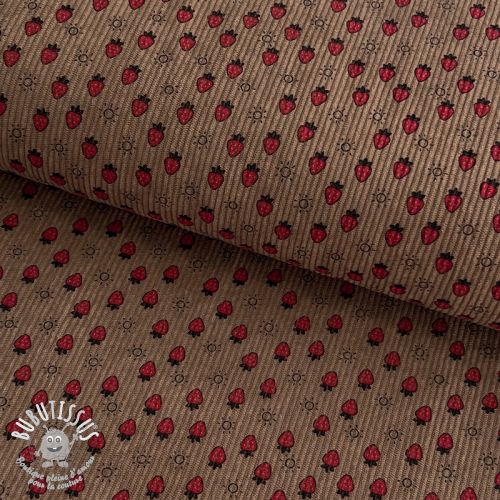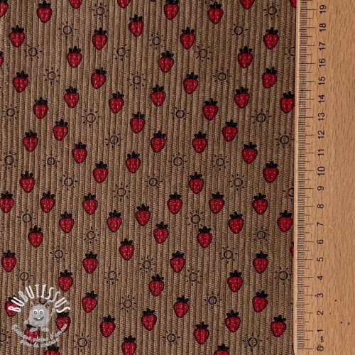Tissu velours cotelé STRETCH Little strawberries taupe