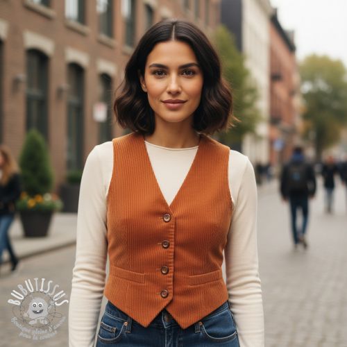 Tissu velours cotelé cognac