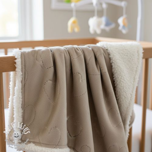 Tissu velours jersey TEDDY Hearts taupe