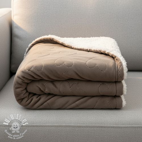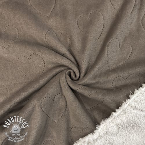 Tissu velours jersey TEDDY Hearts taupe