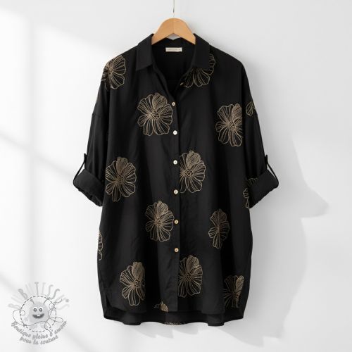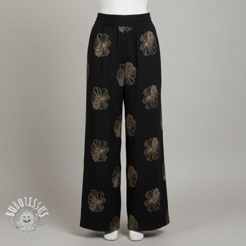 Viscose lin EMBROIDERY Flower Maya black